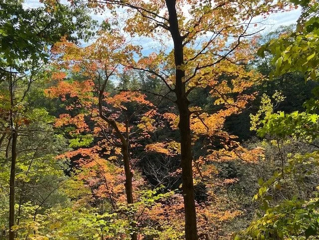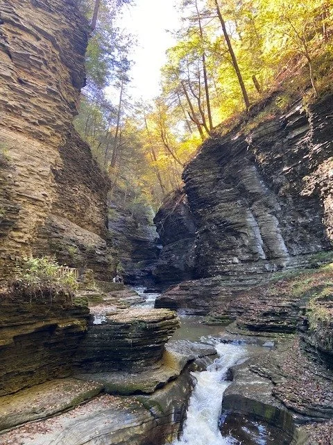 Here in New England, climate change has confused the famous foliage, so we have as yet only a smattering of color. Still, a walk in unseasonably warm weather through Watkin’s Glen doesn’t disappoint: