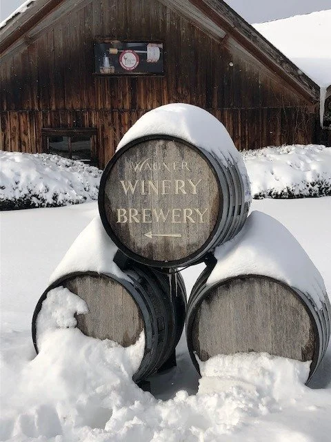 With 35 wineries on Seneca Lake alone, clearly this time we could only dip our toes in the Finger Lakes’ boozy waters. We passed breweries, distilleries, meaderies, farm stores, cafes and scenic lookouts galore, but lingered for peaceful hours on high balconies overlooking a steep and rolling landscape of snow and vines and rippling water. Snuggled into our down parkas under the glow of outdoor heat lamps and sipping our glasses of Gewurtzraminer in peace and solitude, oblivious to the Great Indoorsening thundering toward us from distant Wuhan, February felt fairly fabulous.